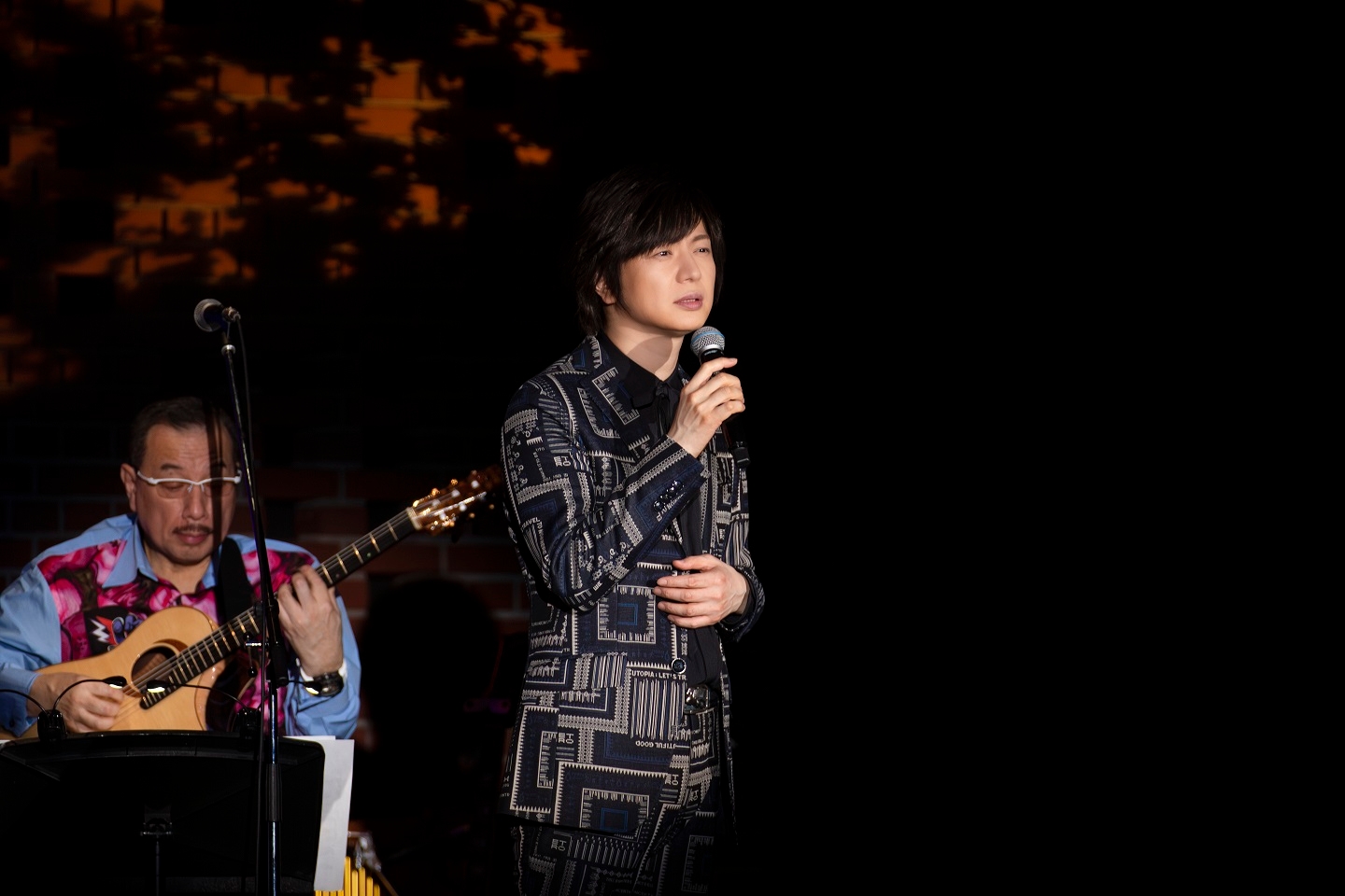 この日は、音楽監督そしてギター演奏に世界的ギタリスト・吉田次郎氏を迎えたスペシャルなコンサート。昨年7月に大阪で行われたコンサートでのコラボレーションが大好評を博し、再びの共演が実現した。吉田次郎氏は、ニューヨークを拠点に活動をしている世界的ギタリスト。ポールマッカートニー、シンディーローパー、アデル、アリシアキーズなど錚々たるアーティストと共演を果たしている。歌手・竹島 宏との新しい化学反応に、ファンからの期待も大きく、一部のチケットは発売早々に完売したという。