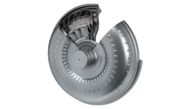 オートマチックトランスミッショントルクコンバーターとは、自動車のオートマチックトランスミッション(AT)において、エンジンの回転力(トルク)を効率的に伝達・変換する流体動力装置である。トルクコンバーターは、インペラー、タービン、ステーターの三つの主要部品で構成され、液体の流れを利用して回転力を増幅させ、滑らかで連続的な動力伝達を実現する。これにより、エンジンと駆動輪の回転差を吸収し、発進時や低速走行時でも振動やショックを軽減する役割を果たす。また、回生トルクや油圧制御により燃費性能や加速性能を向上させることが可能であり、自動車の走行安定性や乗り心地の向上にも寄与する。近年では、高効率化や小型軽量化が進められ、ハイブリッド車や高性能車など幅広い車種に採用されている、重要な駆動系部品である。