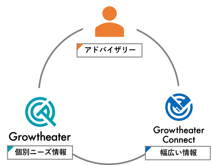海外情報を紹介する既存メディアは情報の提供のみに専念してきました。Growtheater Connectでは、海外スタートアップシーンの情報だけではなく、既存サービスのGrowtheaterを通じた個別企業の具体的なニーズ情報、アドバイザリーサービスを通じた海外企業との提携支援まで一貫して提供します。
