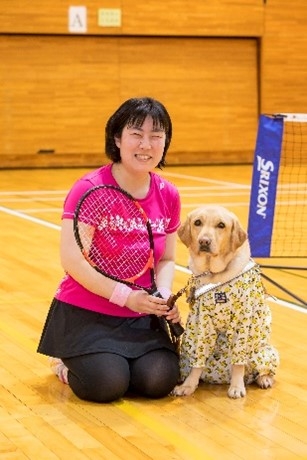ブラインドテニスに夢中です。全国大会にもウクルと2人で遠征します。盲導犬と一緒に誰にも気兼ねなく好きな時に出かけることができるようになりました。