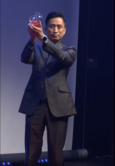 ティーチャー部門受賞者に送られるTikTokロゴがかたどられたトロフィーを受けとりました。