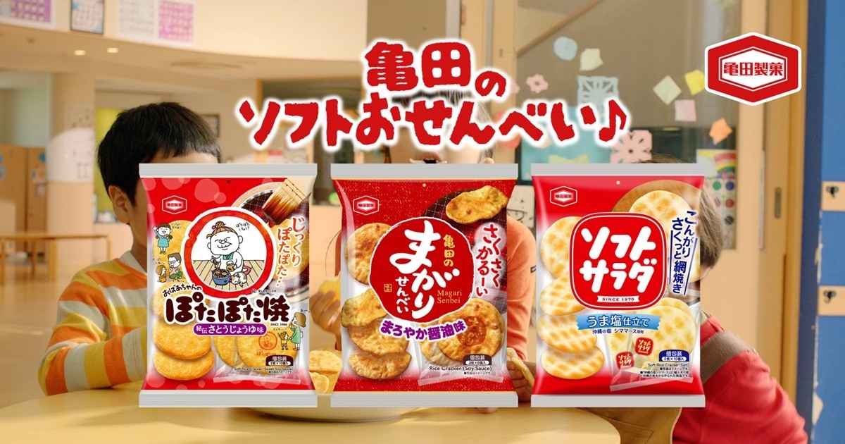 亀田製菓株式会社(本社:新潟県新潟市、代表取締役社長 COO:髙木 政紀)は、サクサクとした食感が特徴で三世代に愛されているロングセラー商品『ぽたぽた焼』『亀田のまがりせんべい』『ソフトサラダ』の新CMを制作、夏休みに合わせて7月21日(月)より全国にて順次放送を開始します。CMでは、亀田製菓のサウンドロゴ「亀田のあられ♪おせんべい♪」を活かしたオリジナルソングに合わせて、子どもたちが元気いっぱいおせんべいを頬張ります。商品のおいしさの秘訣を盛り込んだ歌詞にも注目です。