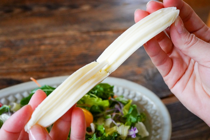 「ストリングチーズ」という、さけるタイプのチーズ3種や、生の「カマンベール」、味噌が絡まった「味噌チー」に、季節限定の「フロマージュブラン」など、計6種類のチーズを堪能できる、チーズ工房1103さんの「北海道チーズ6種食べ比べ福袋」です!6種類の中でも1番人気なのが「ストリング拓」。一口食べればミルクの風味が口に広がり、程よい塩味とチーズをさく楽しさは、お子さまから大人まで人気の逸品です!