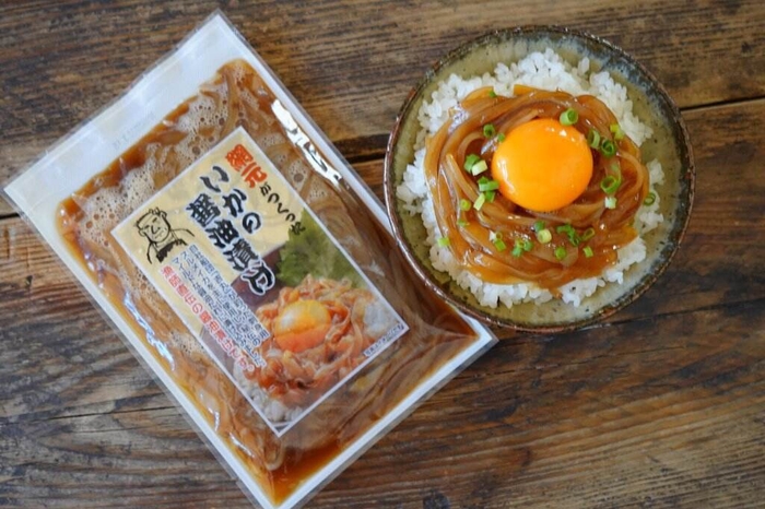 「いか醤油漬け」は日本海産の新鮮なスルメイカを使用。特製の醤油ダレの味付けと、つるつる・ぷりぷりで、噛んだ瞬間コリっと弾ける食感がたまりません!