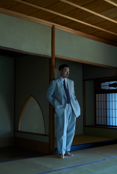 写真家でありながら、トラディショナルな装いでも注目を集める長山一樹氏とのコラボレーションで実現したのは、80年代の雰囲気漂うクラシックなシアサッカースーツ。