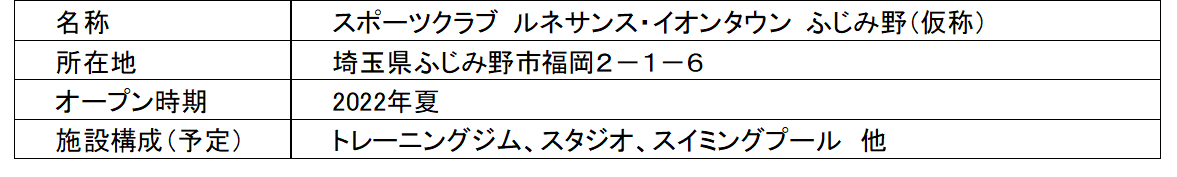 「スポーツクラブ ルネサンス・イオンタウン ふじみ野(仮称)」出店のお知らせ