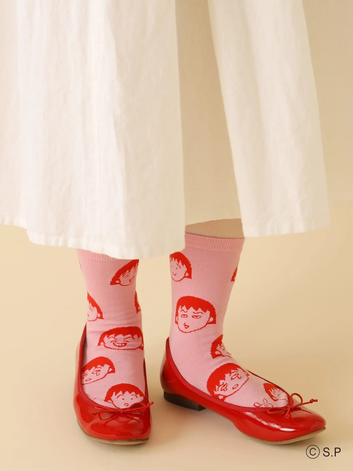 <ちびまる子ちゃんフェイス総柄ソックス>