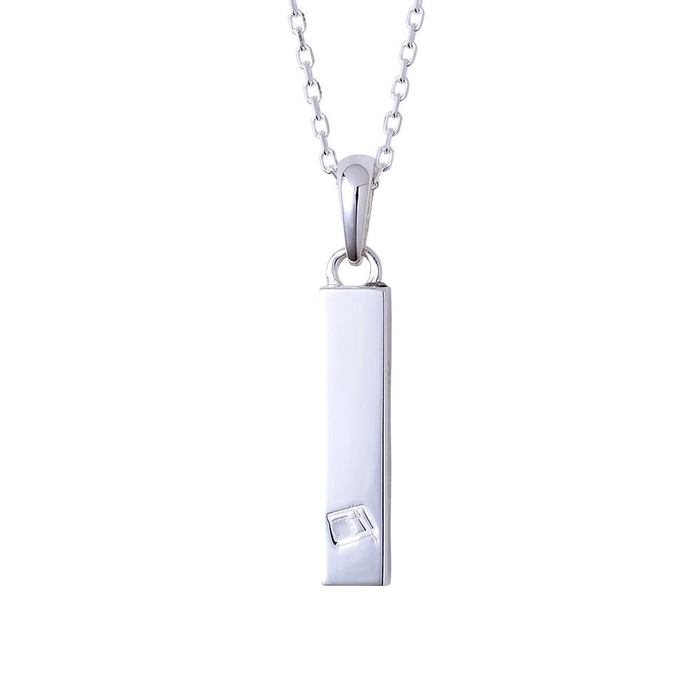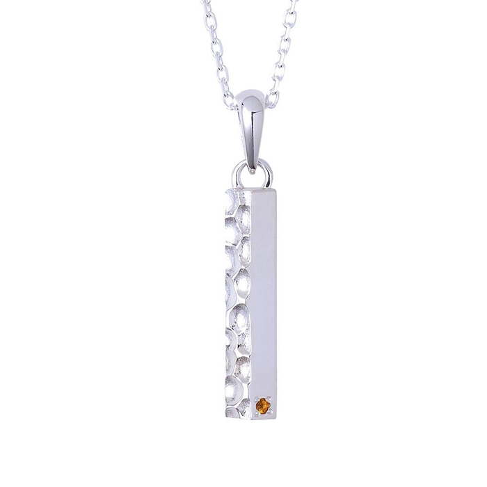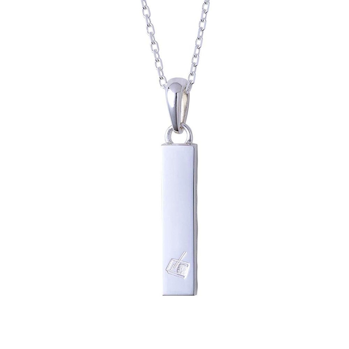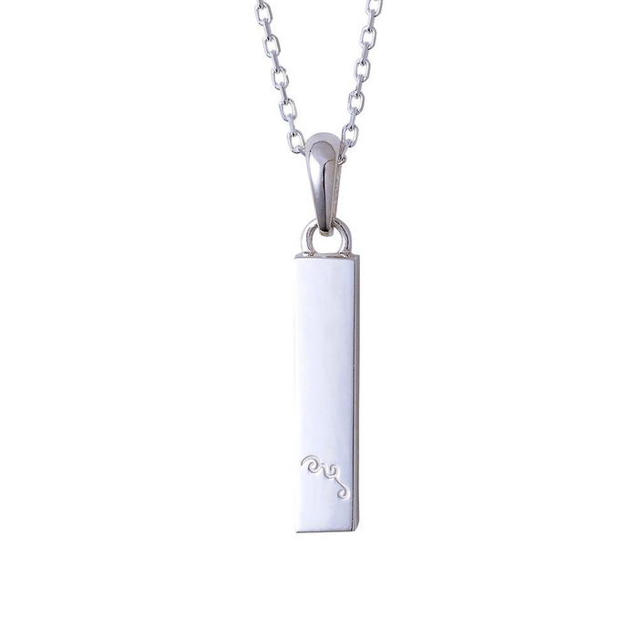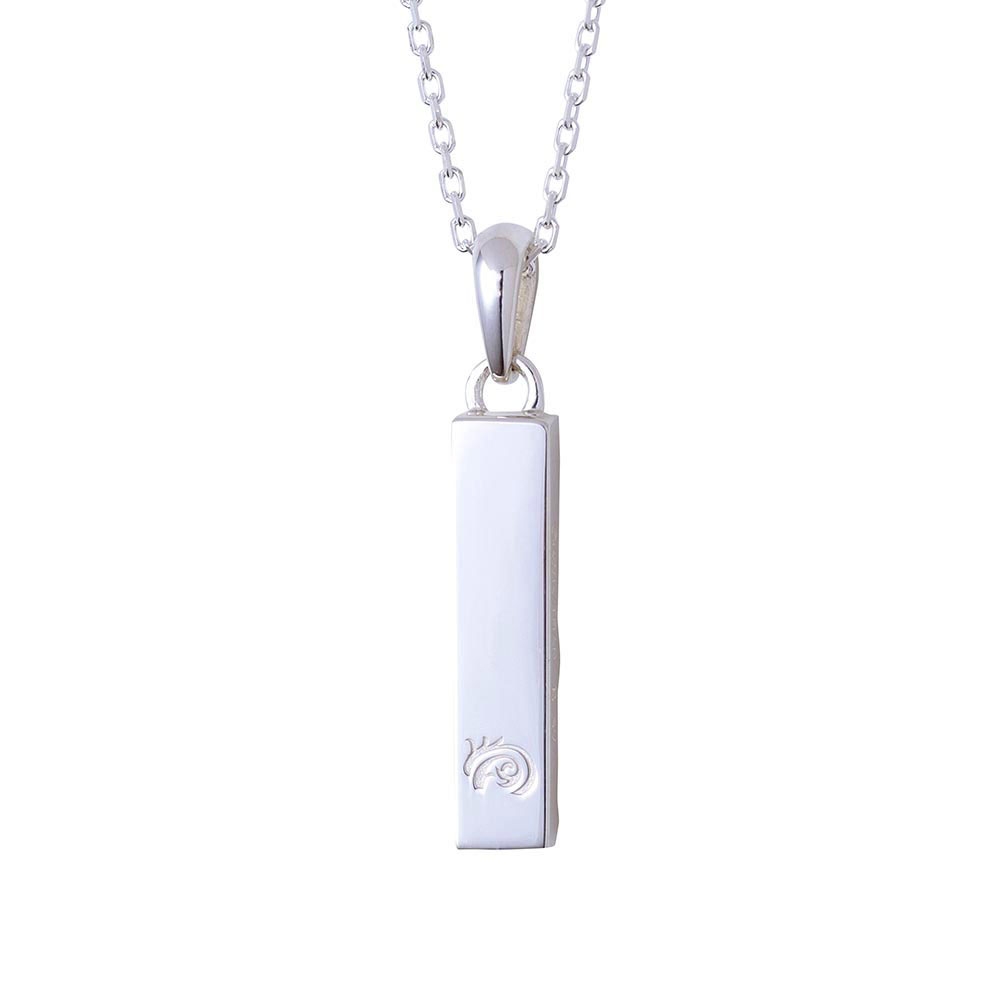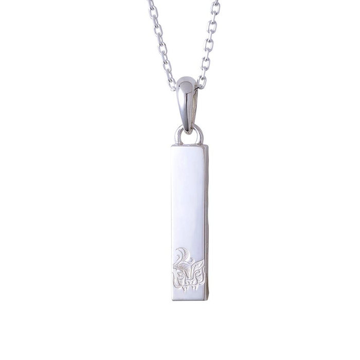バータイプのネックレストップは槌目加工と鏡面加工の異なるテクスチャーで仕上げ、喧嘩をしても立ち上がる姿を2層で表現しました。