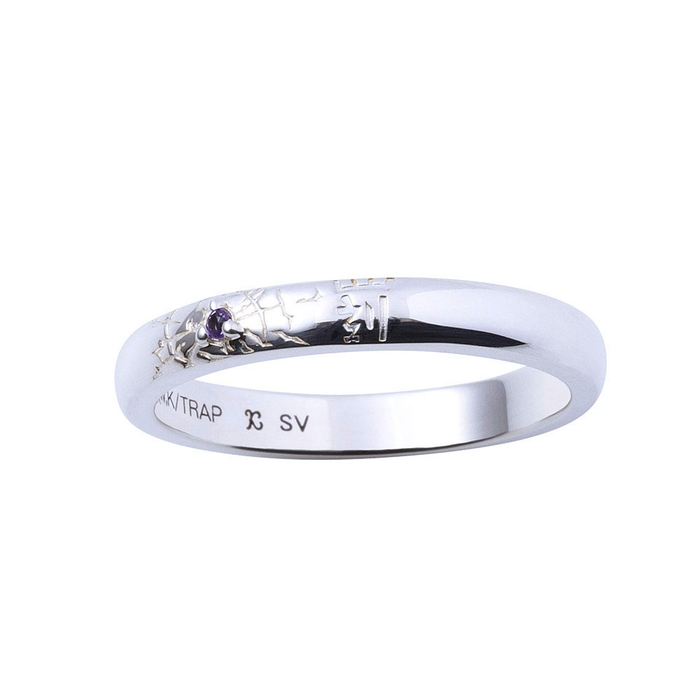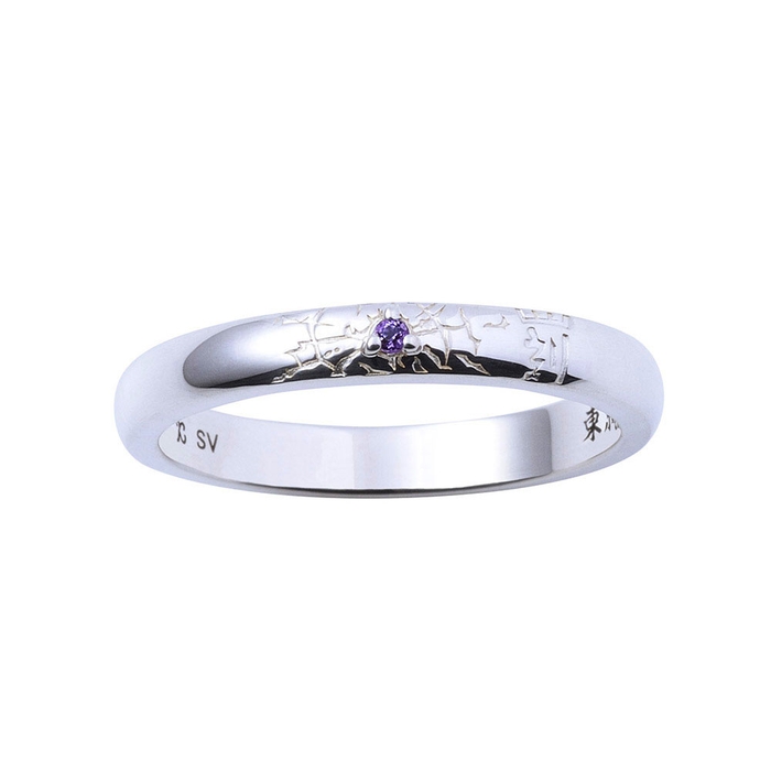 甲丸フォルムのリングに弾痕と右手のタトゥーを取り込み、イメージカラーのアメジストをセット。内側には「東京卍會」を黒塗装で刻印しました。