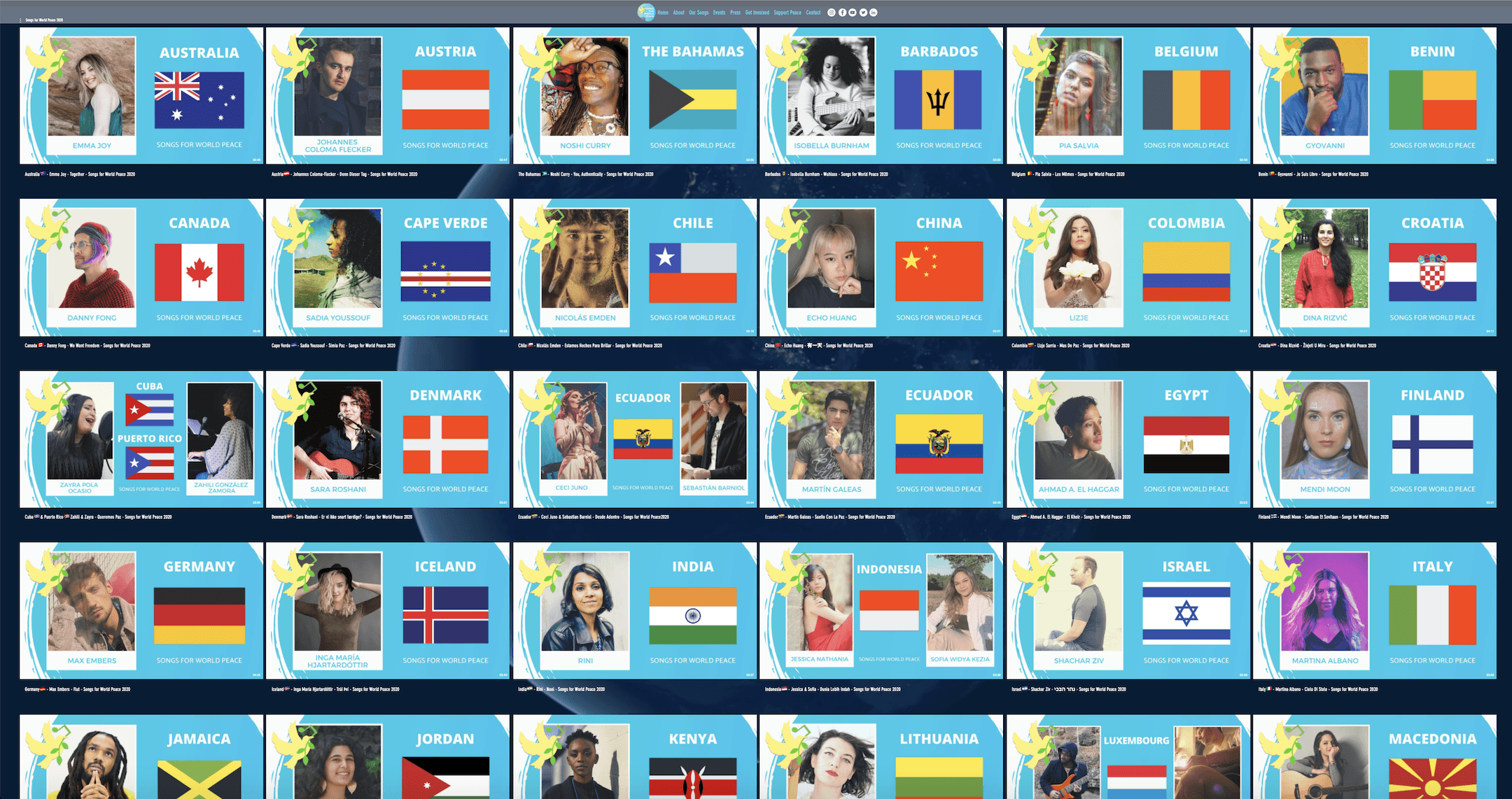 Songs for World Peaceが世界各国からの声を共有し、団結への声を挙げ、平和の日を祝うのは今年で2年目。地球規模で稀に見る困難に直面している昨今、当イニシアチブは音楽が喜びや平安な心を世界へ届けることができると信じております。