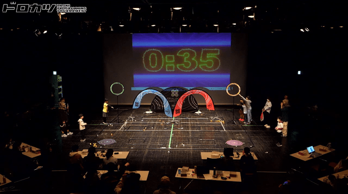 60秒間、ドローンを自律的に操作するプログラムを作成し、得点を競います。ボールを倒したり、風でボールを移動させたり、様々な課題をクリアすることでスコアを獲得できます。創造力あふれるプログラミングスキルが試されます。
