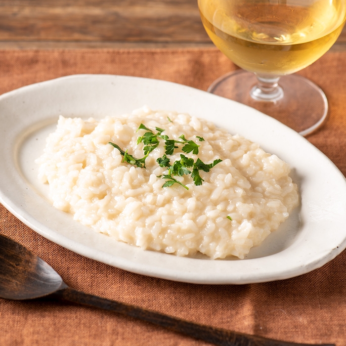 バーニャカウダはアレンジも自在。バター、粉チーズ、バーニャカウダを加えるだけで簡単リゾットのでき上がり。ワインと一緒に至福のひとときをお楽しみください。その他、パスタやサンドイッチのソースとしてもご利用いただけます。