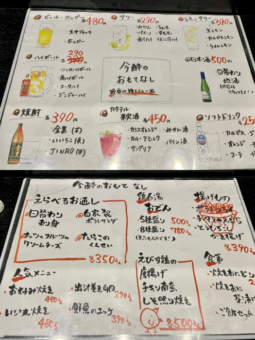 おでん食べ放題500円、唐揚げ食べ放題500円、ビール日本酒飲み放題1500円という、開業からお客様から心配されるレベルの放題サービスを提供しています。初日から大盛況となりました。