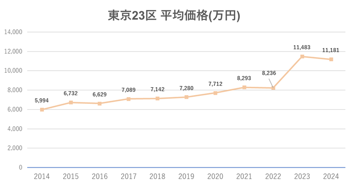 不動産経済研究所が1月23日に発表したデータによると、東京23区における2024年(年間のまとめ)の新築マンションの平均価格は1億1,181万円と、2年連続で1億1,000万円台となりました。価格の高騰により、新築マンションの購入のハードルが上がっています。