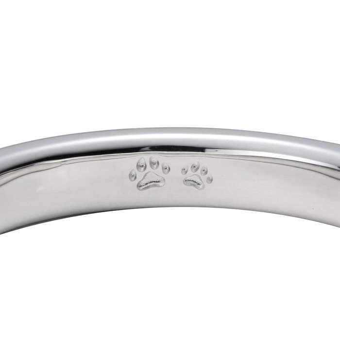 耳と胸元のモチーフを取り込んだ平打ちフォルムの表面に、イメージカラーストーンをセット。内側には猫のぬいぐるみの形を刻印しました。
