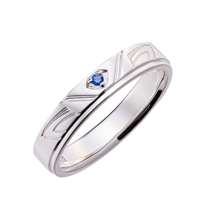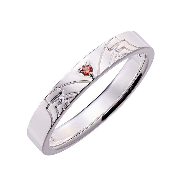 背中の手裏剣モチーフを取り込んだ段差のある平打ちフォルムの表面に、イメージカラーストーンをセット。内側には手裏剣の形を刻印しました。