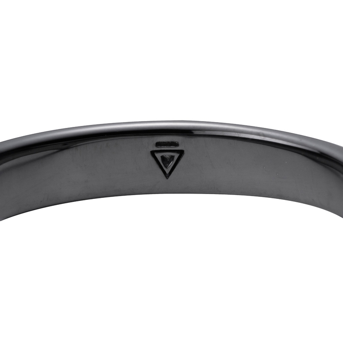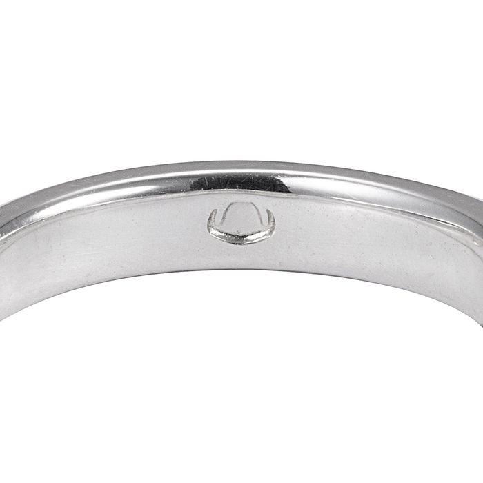 頭の角モチーフを取り込んだ段差のある平打ちフォルムの表面に、イメージカラーストーンをセット。内側にはハットの形を刻印しました。