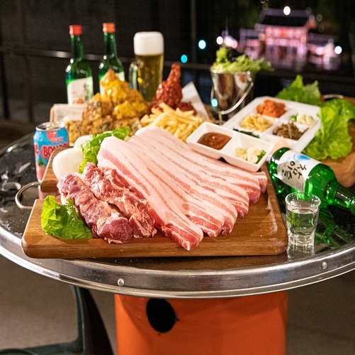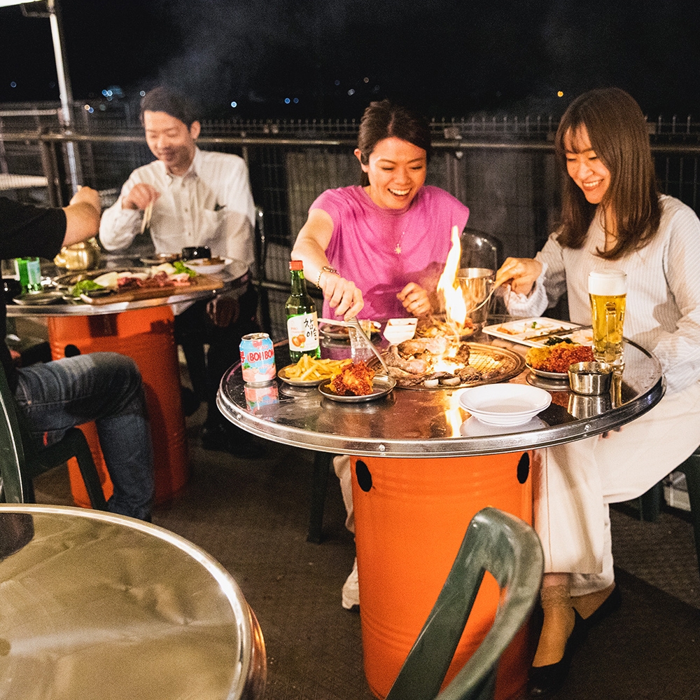 韓国では定番のドラム缶で楽しむ本格炭火焼肉と、韓国ドリンクをオープンエアーな環境でお召し上がり頂けます。