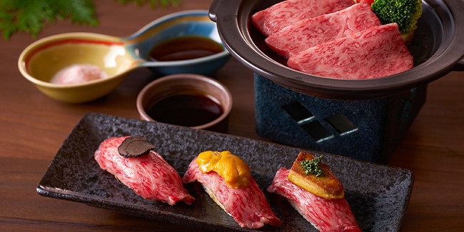 【きめ細かい霜降りを持ち、まろやかでとろけるような風味。陶板焼きと握り寿司、2つの美味しさをお楽しみください。】