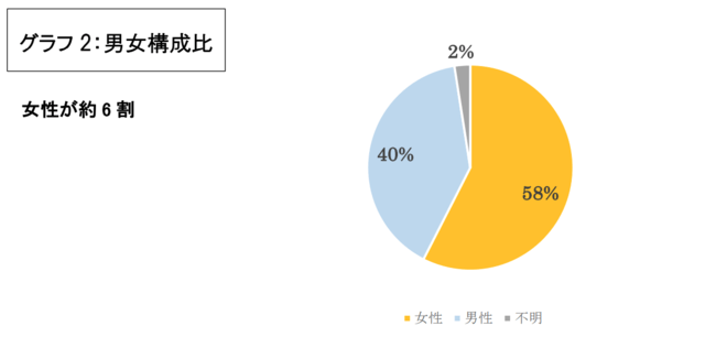 ◼️男女構成比 :女性58%、男性:40%