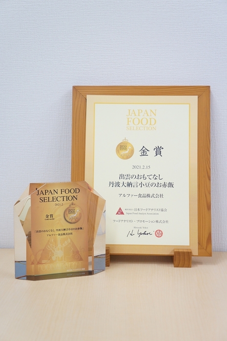 アルファー食品株式会社(本社:島根県出雲市、代表取締役:林 隆史)が販売する、出雲のおもてなしシリーズ「丹波大納言小豆のお赤飯」が一般社団法人日本フードアナリスト協会主催の「第40回 ジャパン・フード・セレクション」にて「金賞」を受賞いたしました。
