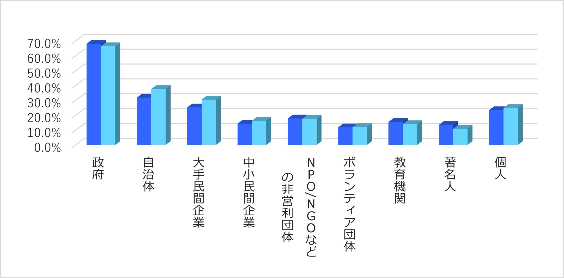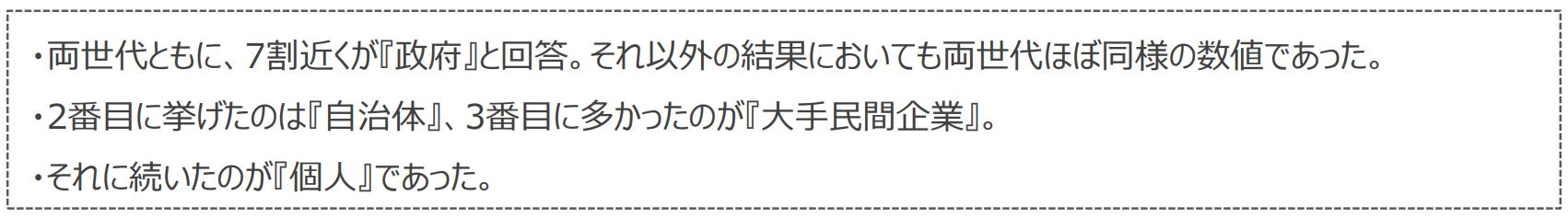 ■設問例 「日本において、社会問題は主に誰が率先して行動すべきだと思いますか。」