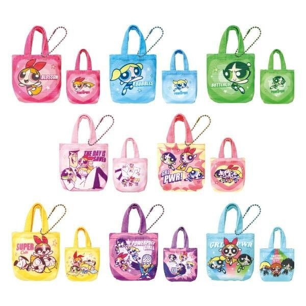 こちらは、パワーパフガールズのトレーディングミニミニトートバッグコンプリートBOXです。全部で8種のミニミニトートが入っています!箱のデザインからパワパフらしさが溢れていて、ファンにとっては嬉しい!