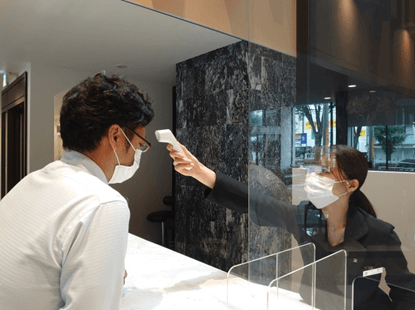 客室内のお客様が触れる部分や、エレベーターなどの多くの人が頻繁に接触する場所は、消毒剤などで定期的に拭き取り消毒をしています