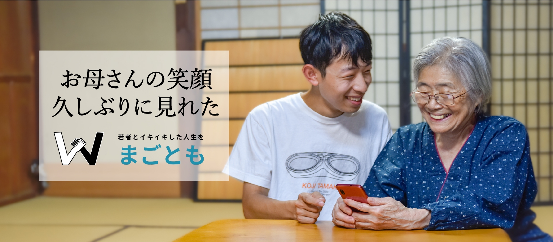 こうした社会問題に対処するため、弊社は『まごとも』という新しい世代間交流サービスを提供しています。『まごとも』では、介護福祉士の監修を受けた若者がシニアを訪問し、外出やデジタルサポートなど、介護保険では対応できない幅広いニーズに応えます。