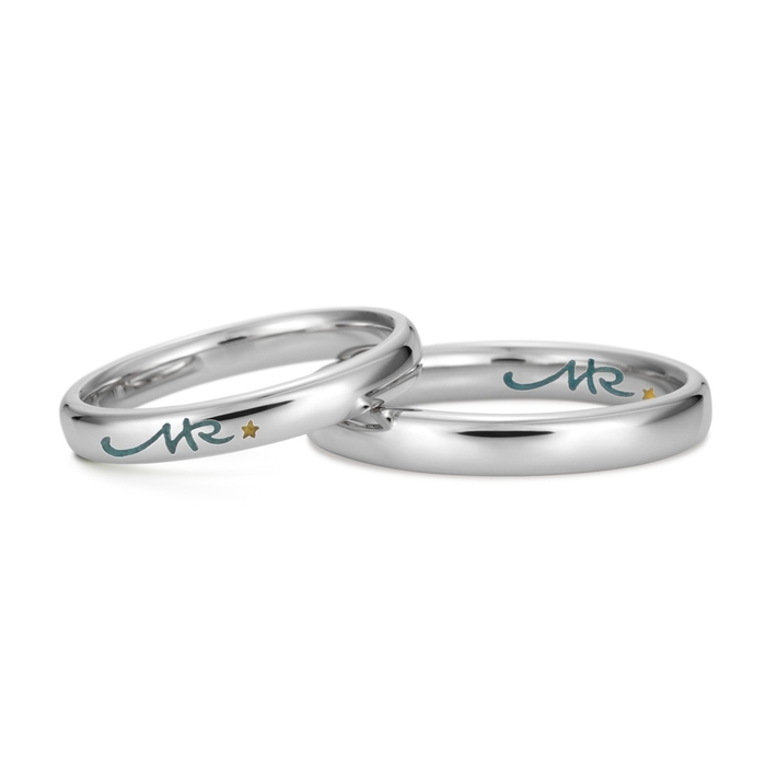 このほどの「フリーライティング カラーコース」は、好きなフォントや手描きマークの刻印に、自由なカラーで着色ができる手作りサービスです。対象アイテムは指輪・ネックレスで、色付けには樹脂を使用します。12色の顔料をパレットで混色したり、グラデーションを作ったりと色味のカスタマイズも可能。ジュエリーコンシェルジュ、デザイナーが希望にあわせたデザインの提案を行います。