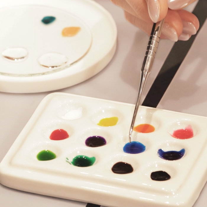 指輪・ネックレスに着色体験。12色の顔料をパレットで調色。新たな手作りサービス「フリーライティング カラーコース」提供