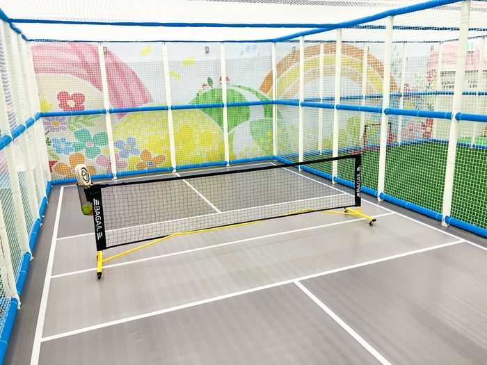 ピックルボールやサッカーなど室内でも体を動かしてスポーツを楽しめるコーナー。