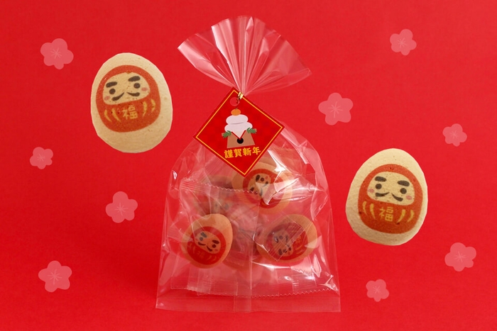 干支やお正月柄がチョコ入りマシュマロにフードプリントされた「お正月マシュマロ」。たまご型ビスケットにキュートなダルマさんが描かれた「だるまビスケット」。また、チョコレートでメッセージが描かれた「チョコペイントクッキー」などなど。どれも200円〜のプチプライスなので、まとめてのお配りにぴったり!お財布にも優しいです。