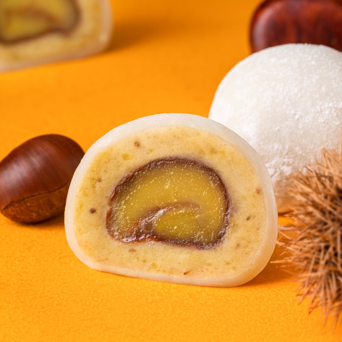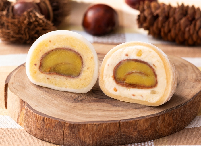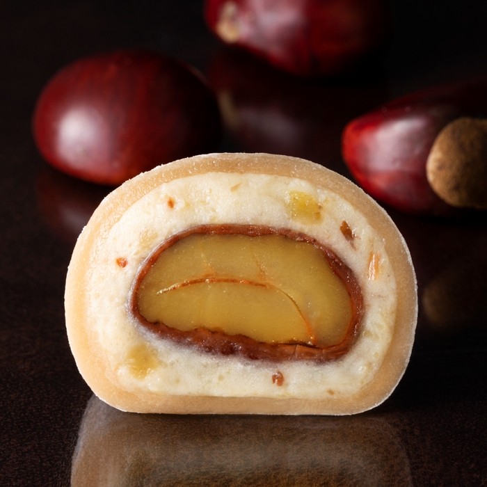 和栗あんにホイップクリームを合わせた、なめらかな和栗クリームを、マロン風味のやわらかな羽二重餅で包んだ和洋折衷の贅沢大福です。