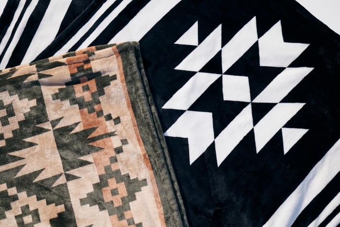 アウトドアシーンに合わせやすいデザインを2種類ご用意。無地やボーダーなどのシンプルなデザインが多い中、PowerArQ Electric Blanketは複数の色を使用した柄模様になっているため、他のキャンプギアやブランケットなどとも合わせやすくなっています。