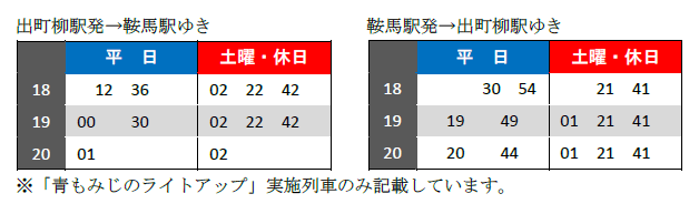 出町柳駅発 18:12~20:01 の鞍 馬 駅ゆき