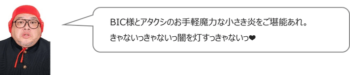 フランスの世界大手ステーショナリーおよびライターブランドSociété BIC(ソシエテ・ビック)の日本法人BICジャパン株式会社(本社:東京都中央区、代表取締役: 吉田 悟)は、大好評のコラボライターシリーズで「長州力 名迷言ライター」、「大悟のいっぷく名言ライター」に続く第3弾として、お笑いコンビ・野性爆弾のくっきー!さんとコラボした新商品「魔火(マビ)ライター」を開発しました。