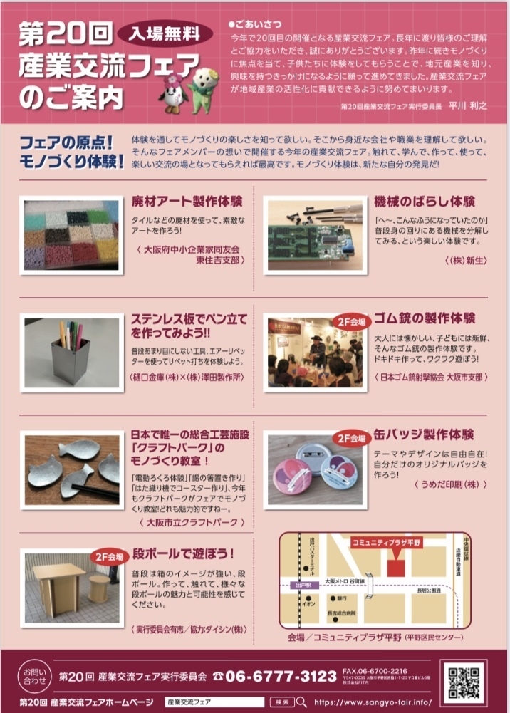 大阪市平野区・東住吉区発 ものづくり体験と地元企業の展示会 「第20回産業交流フェア」11月2日開催