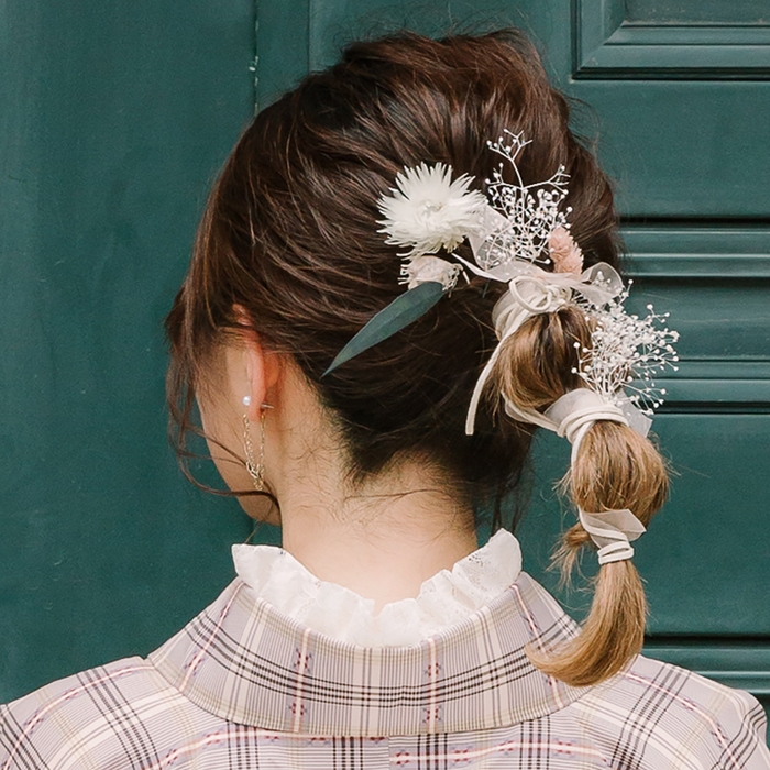 ※ドライフラワーなどの髪飾りは別途で販売しております。