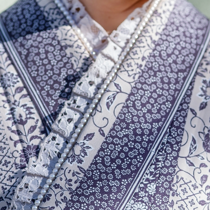 パールや金色のレースを使った重ね衿でかわいいだけでなく高級感あふれる仕上りとなっております。
