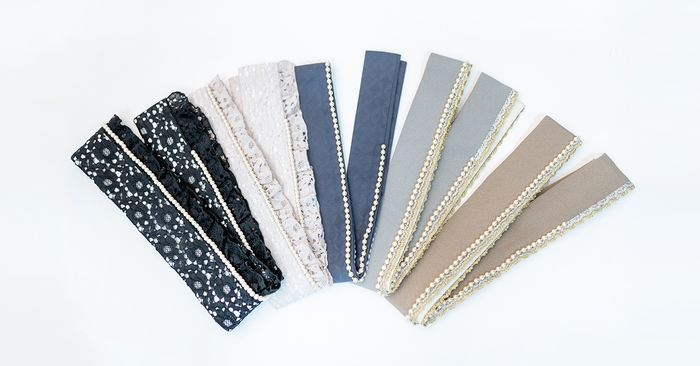 今までのレースとは異なりサテン生地、パールやきらきらした金色のレースがあしらわれていますのでお好みのものを選ぶことができます。