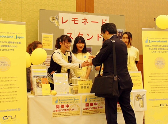 アメリカ本国では、子どもたちが自分で作ったレモネードを売ってお小遣い稼ぎをするレモネードスタンドが夏の風物詩です。ある時がんと闘う一人の少女が、「自分と同じような病気の子どもを助ける治療法を見つけてもらいたい!」と自宅の庭でレモネードスタンド開き、集まったお金を病院に寄付する活動を始めました。この活動は全米に報道されて多くの募金が集められました。それから少女が亡くなった今も、この活動は全米で引き継がれています。そしてレモネードスタンドは日本でも社会貢献活動として徐々に広まり、学校の文化祭や地域のお祭り、企業のイベントなどでおいしいレモネードが提供されて、そこで集まった募金は小児がんの研究支援に活用されています。