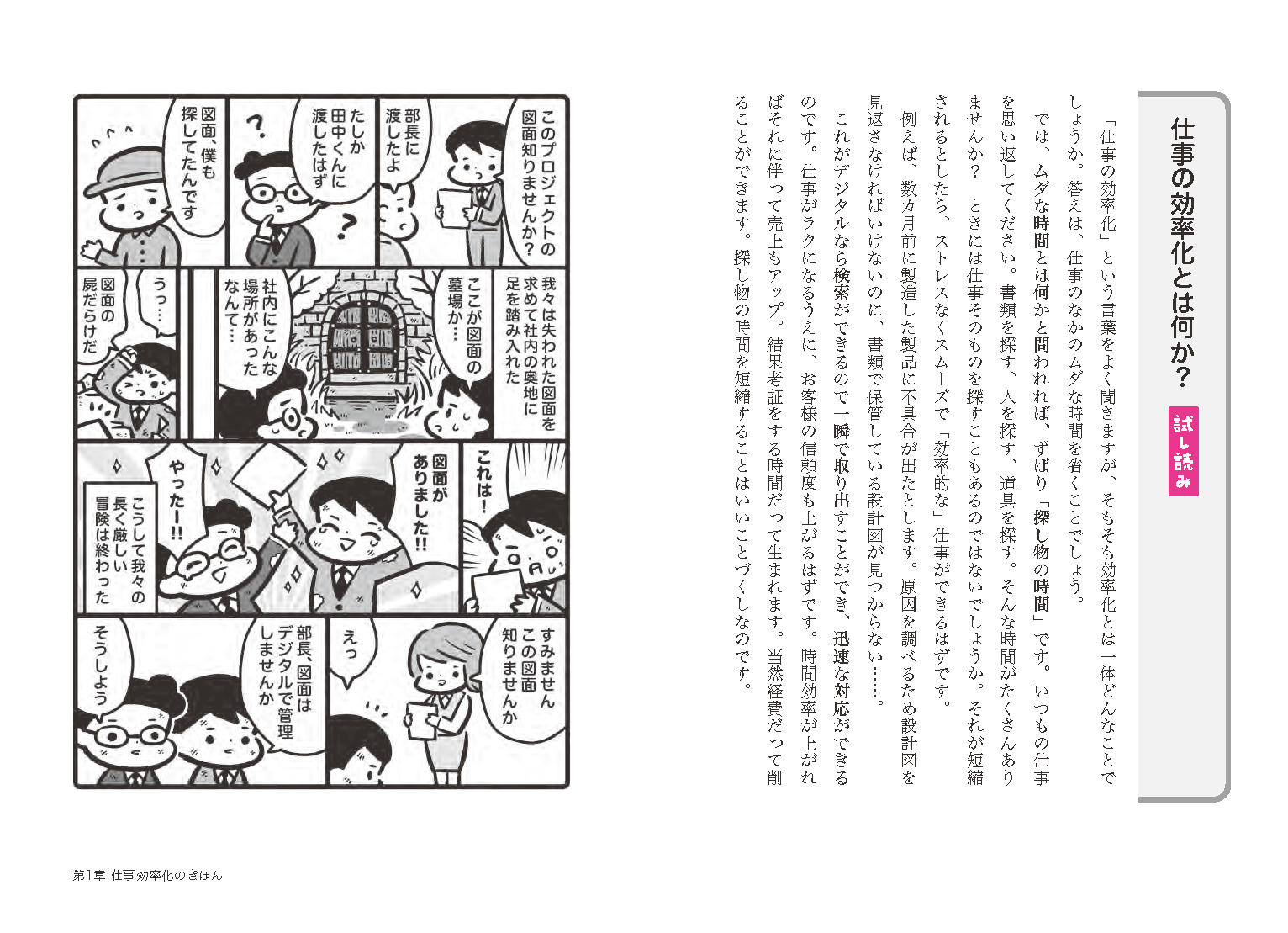 この本は比較的小さな規模の会社や組織に向けて、DXやデジタル化、仕事の効率化という課題をどのように実施すればよいかを概論や経験談を中心に読みやすく構成したものになっています。製造業に限らずどんな業種の方にでもヒントになるような内容になっており、デジタル化本にもかかわらずアナログも融合させる内容や、マンガによる紹介も追加することで読みやすさにこだわり、デジタル化一辺倒の解説本になりがちなテーマに一石を投じています。