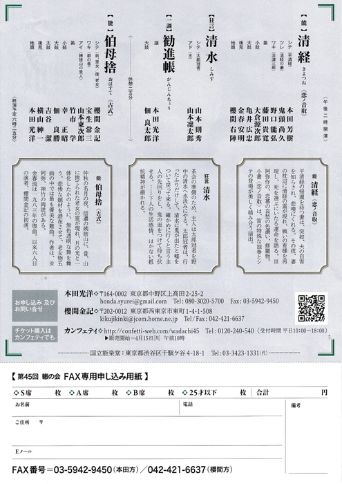 金春流 轍の会「伯母捨」「清経 恋ノ音取」チケット販売開始!