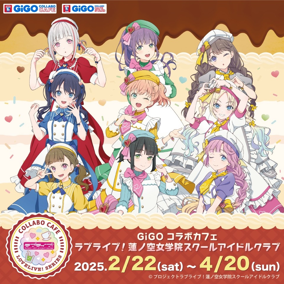 株式会社GENDA GiGO Entertainmentでは、「ラブライブ!蓮ノ空女学院スクールアイドルクラブ」とコラボレーションしたカフェを2025年2月22日(土)より、GiGO コラボカフェ秋葉原3号館、GiGO コラボカフェスタンド/札幌ノルベサ・仙台・秋葉原2号館・ささしま・河原町オーパB1F・大阪道頓堀本店・岡山・福岡天神・くまもとにて開催いたします。