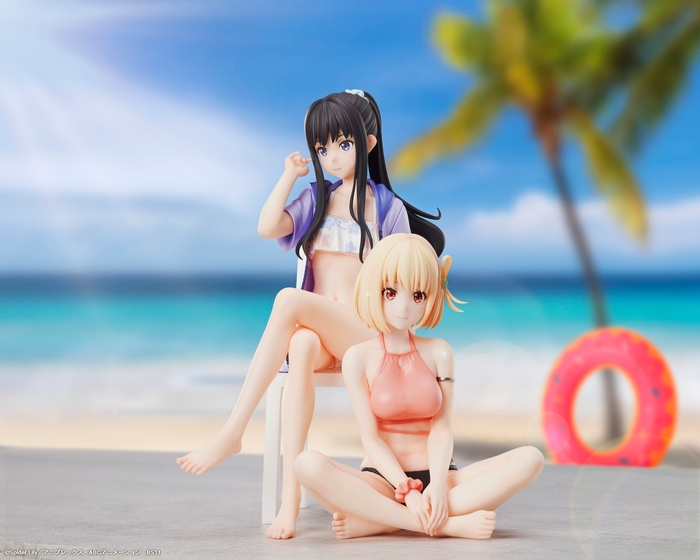 千束らしいスポーティな水着を身に着け、座った姿で立体化!