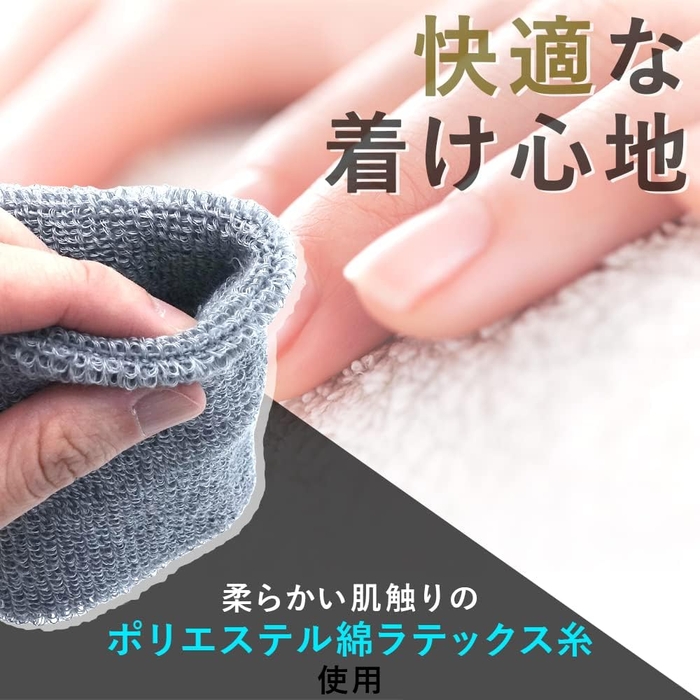 高密度で編まれた柔らかな生地を使用しており、通気性が非常に高いのが特徴です。また、使用後は洗濯しても型崩れしにくく、耐久性に優れています。伸縮性に富んだ素材を使用しているため、様々な腕のサイズにフィットし、締め付けが少ないため運動の動きを妨げにくいのもポイントです。