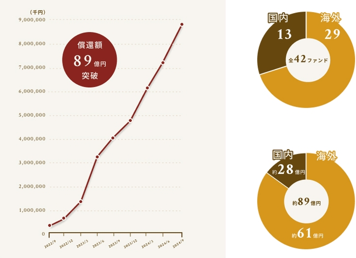 TECROWDでは過去に、42ファンド、合計89億円の元本償還を実施しています。