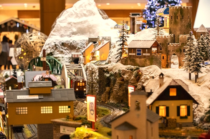 大人も子供も魅了する、全長11mの巨大鉄道ジオラマをロビーに展示します。美しく雪化粧した山間や街の中を新幹線やトロッコ電車が走り、港町も精巧に作られ再現された「クリスマス・トレイン」をご家族でお楽しみください。