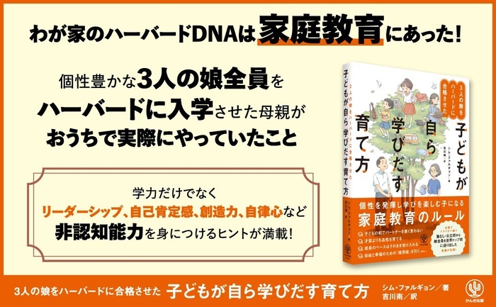 株式会社かんき出版(本社:千代田区 代表取締役社長:齊藤龍男)は、『3人の娘をハーバードに合格させた 子どもが自ら学びだす育て方』(シム・ファルギョン/著 吉川南/訳)を2024年10月9日より全国の書店・オンライン書店等(一部除く)で発売いたします。